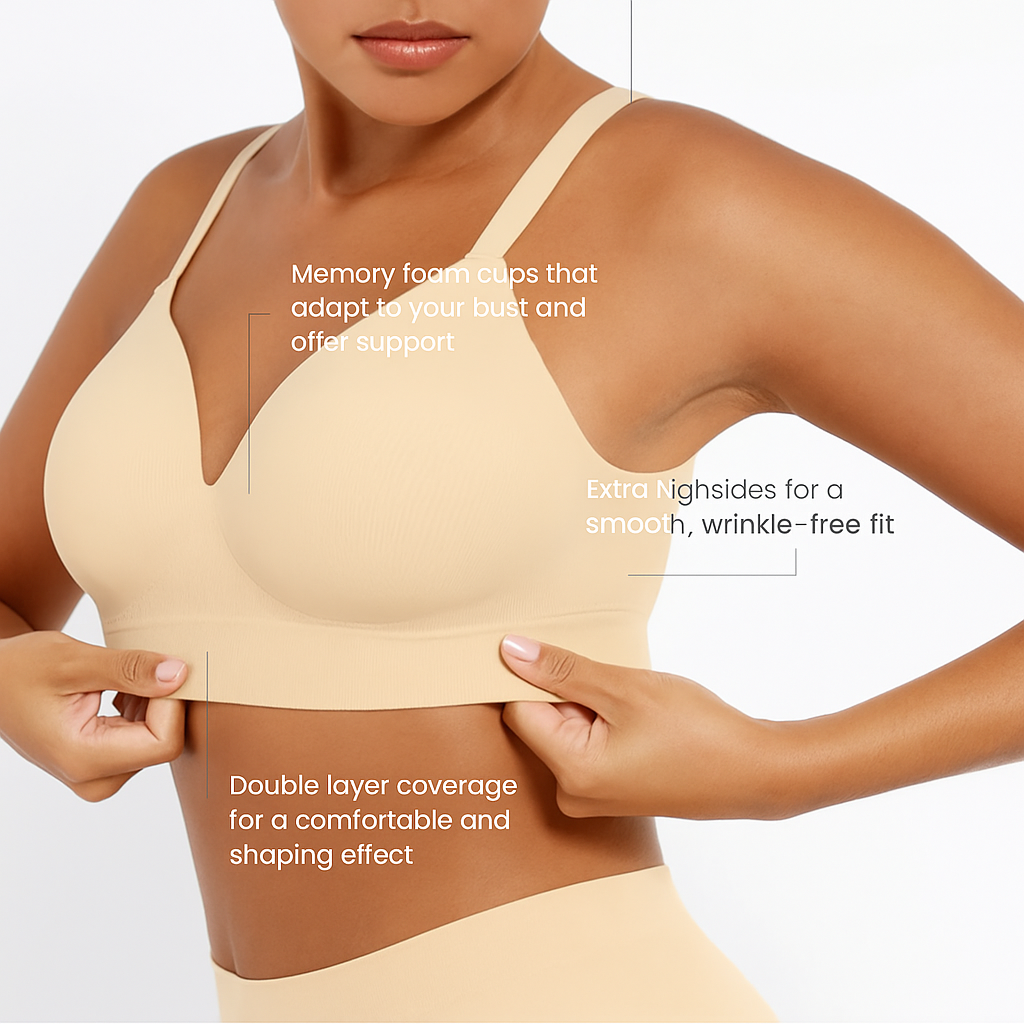 This bra features a seamless, smoothing design that eliminates back rolls and visible lines for a perfect silhouette under any outfit. It also helps reduce pressure and discomfort in the back , making it ideal for women with back or shoulder pain or other conditions requiring extra comfort.